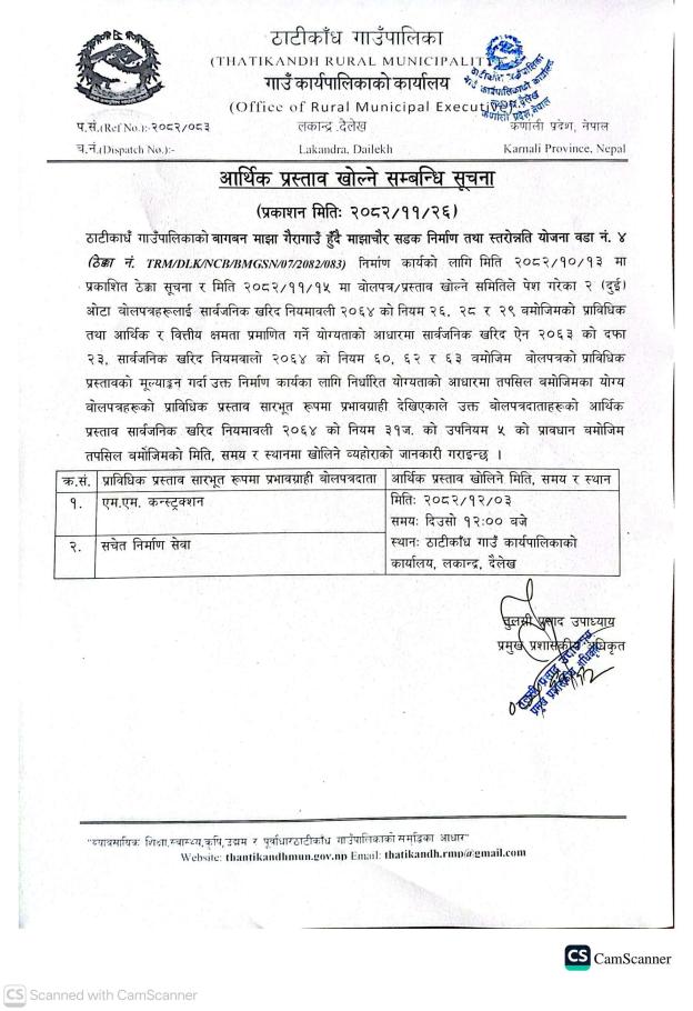 आर्थिक प्रस्ताव खाेल्ने सम्बन्धि सूचना।।