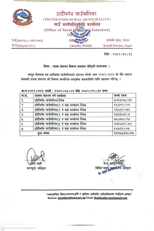 राजस्व संकलन विवरण प्रकाशन गरिएको सम्बन्धमा ।