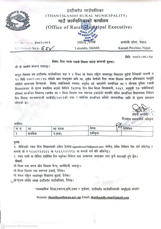 रिक्त पदमा स्थायि शिक्षक सरूवा सम्बन्धी सूचना।।
