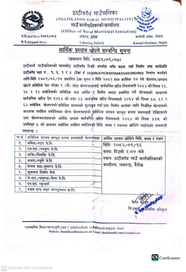 आर्थि प्रस्ताव खाेल्ने सम्बन्धी सूचना।।