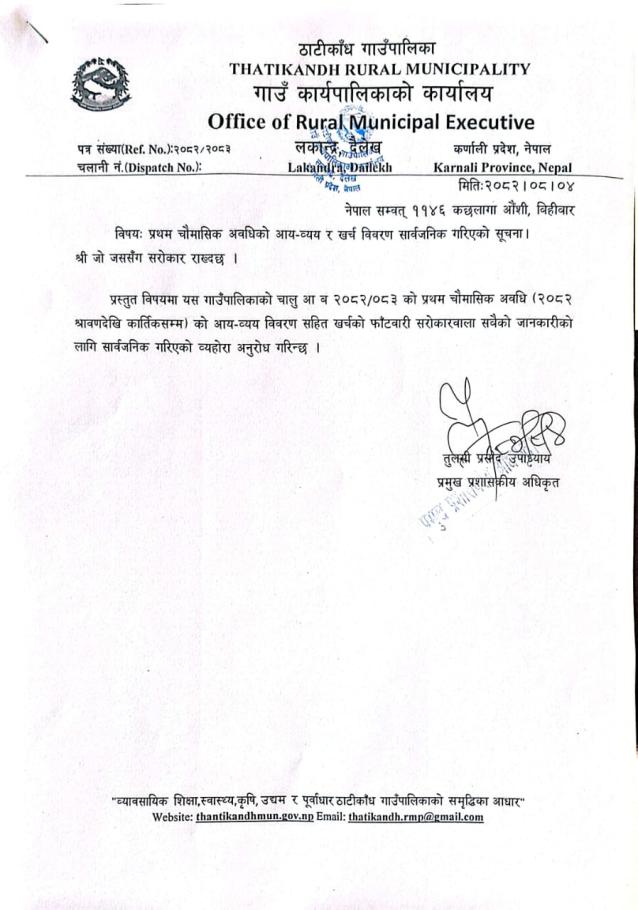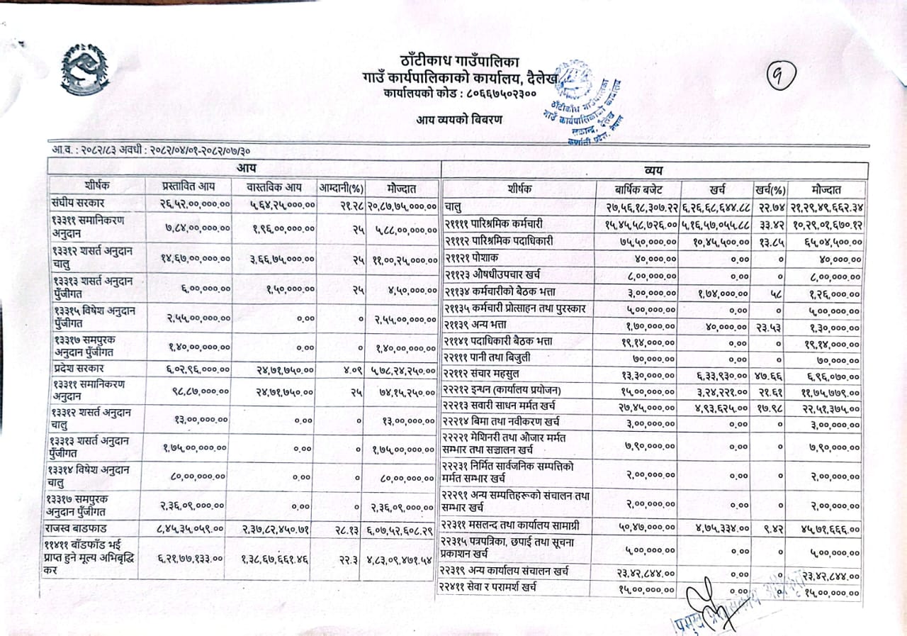 आ व २०८२/०८३ काे २०८२/०७/३० गते सम्मकाे आय व्यय प्रकाशन गरियकाे