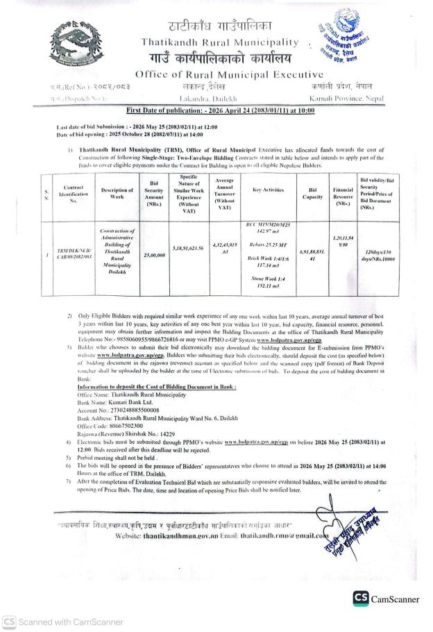 प्रशासनिक भवनकाे निर्माण सम्बन्धी सूचना।।
