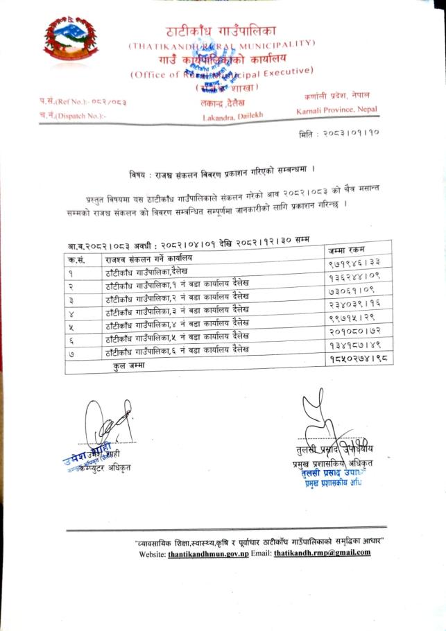 राजस्व संकलन विवरण प्रकाशन गरिएको बारेमा ।