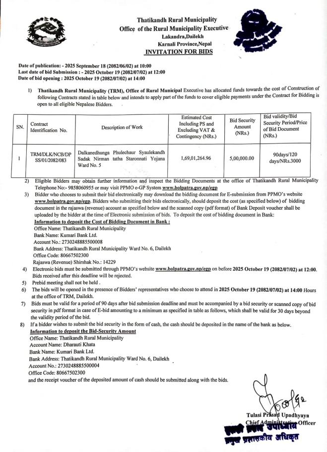 ४ प्रहरि चाैकि ठाटीकाँध 9868032677
